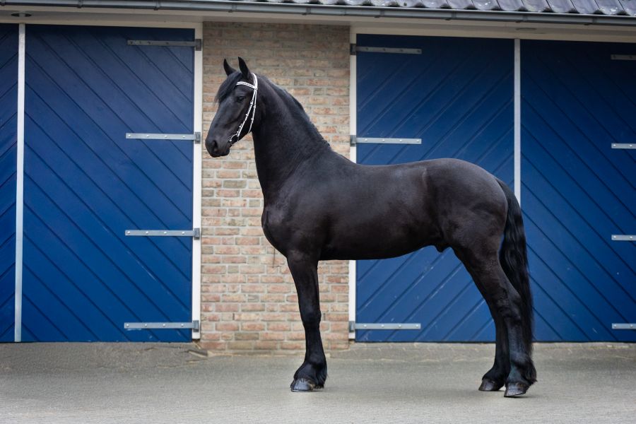Dit is Ysbran. Een prachtige hengst welke afstamt van de mooie combinatie Auwert 514 x Alwin 469. Het is een heel lief en rustig paard op stal. De boxdeur gaat open en Ysbran komt gelijk naar je toe. Ook met opzadelen of op de poetsplaats is het een voorbeeldig paard. Onder het zadel toont dit paard veel talent in alle 3 zijn gangen. Hij is niet kijkerig op zijn omgeving en heeft een zeer fijne looplust. Gezien zijn karakter en zijn beweging kan je met de paard alle kanten op. Of hoge ogen gooien in de dressuur of fijn naar buiten omdat wij inschatten dat hij dit erg leuk gaat vinden.
